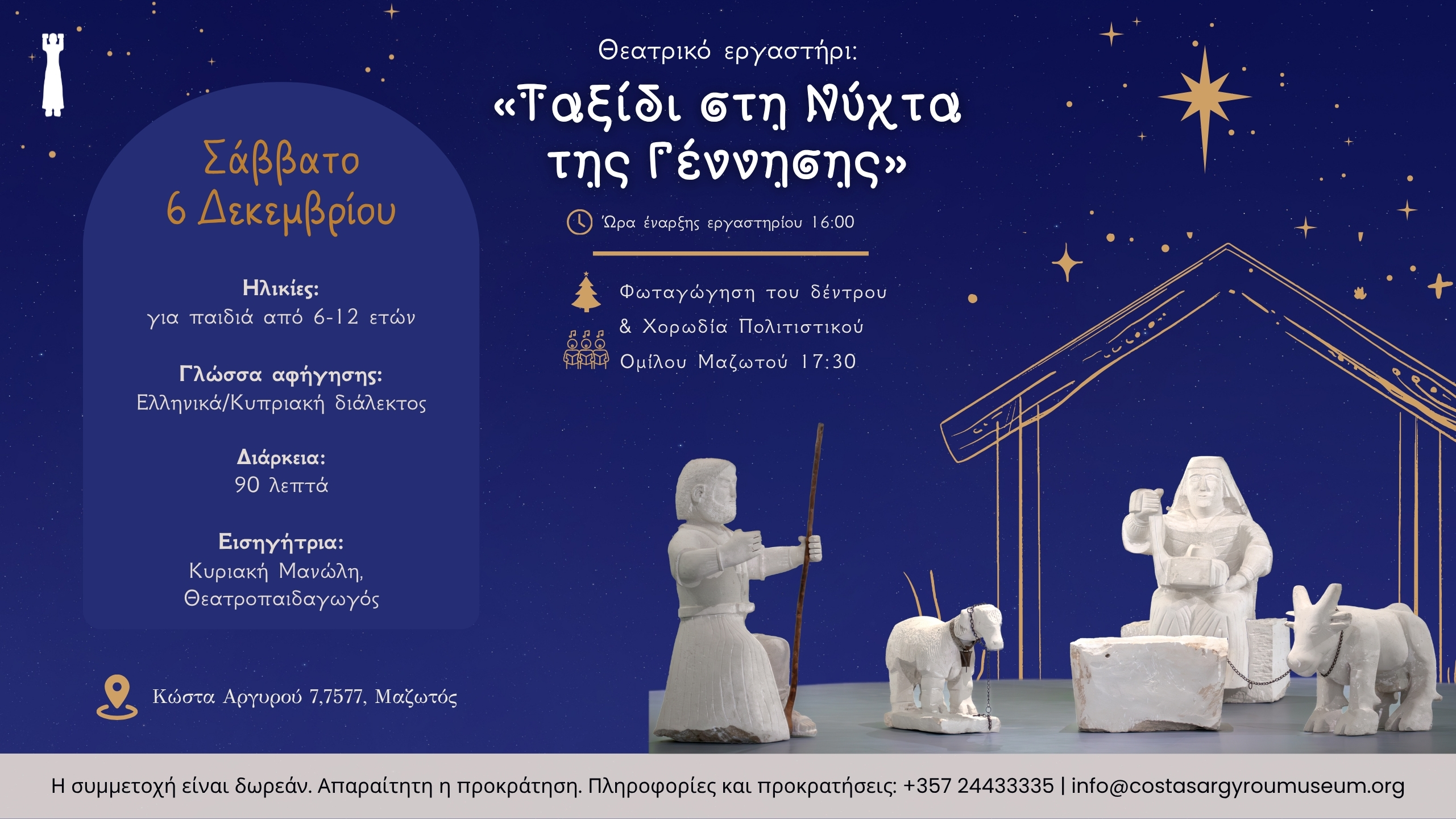 Για περισσότερες πληροφορίες και προκρατήσεις:📞 +357 24433335 📧 info@costasargyroumuseum.org