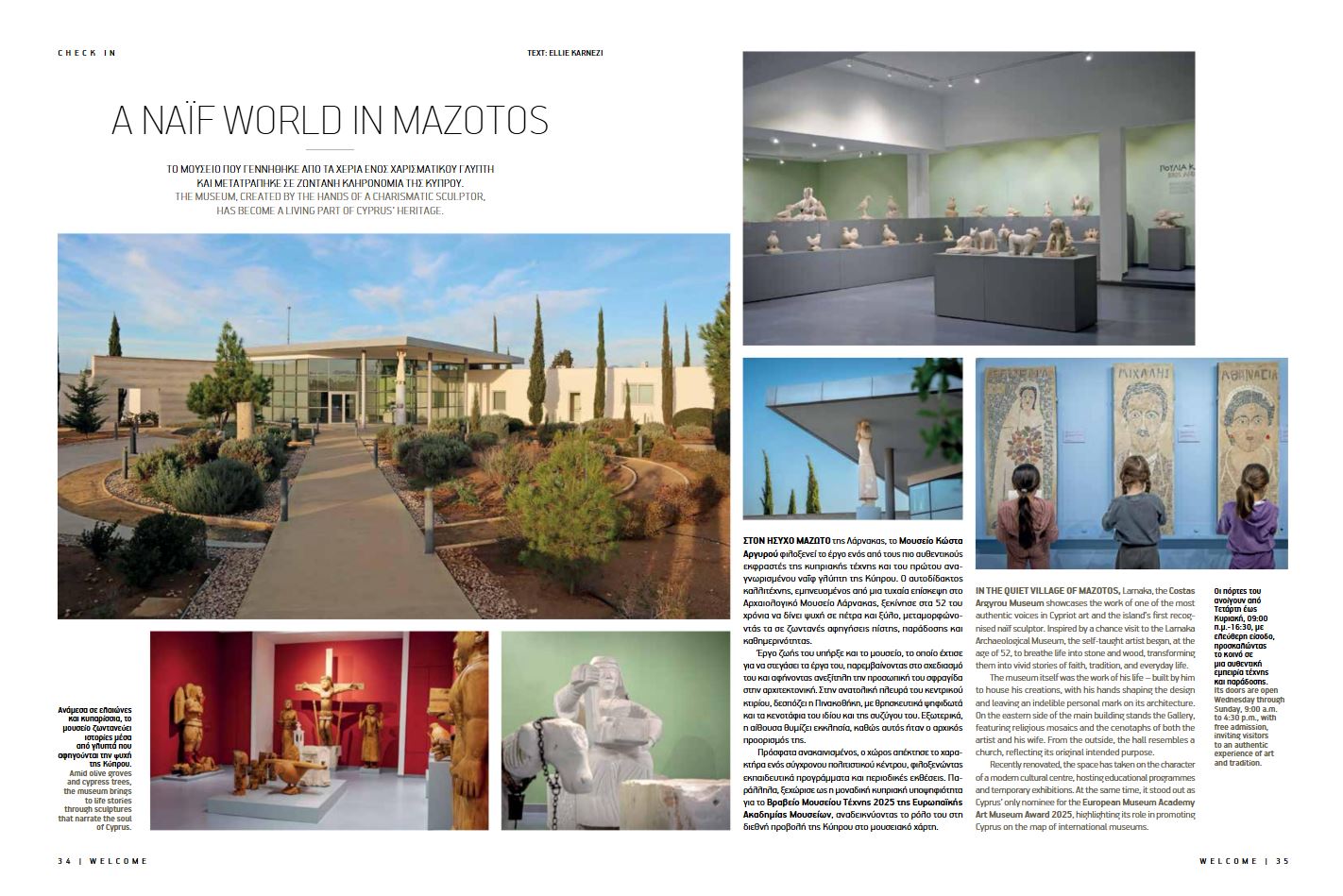Το Μουσείο Κώστα Αργυρού συμπεριλήφθηκε στο τελευταίο χειμερινό τεύχος 2025–2026 του επίσημου περιοδικού της Hermes Airport, "Welcome", με αφιέρωμα στο έργο του πρώτου επώνυμου Κύπριου ναΐφ καλλιτέχνη, Κώστα Αργυρού. Ευχαριστούμε την κυρία Έλλη Καρνέζη για τη σύνταξη του κειμένου.