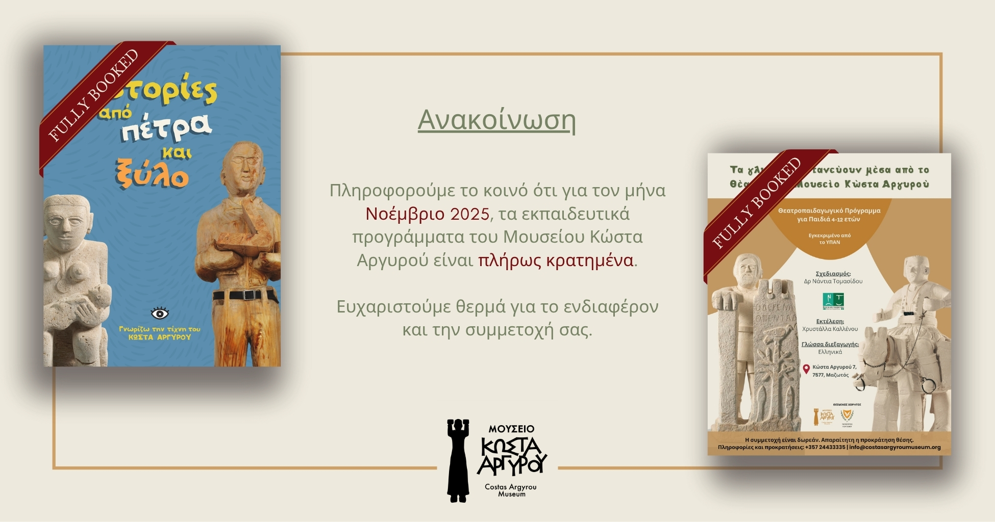Πληροφορίες και κρατήσεις: 24433335 / info@costasargyroumuseum.org